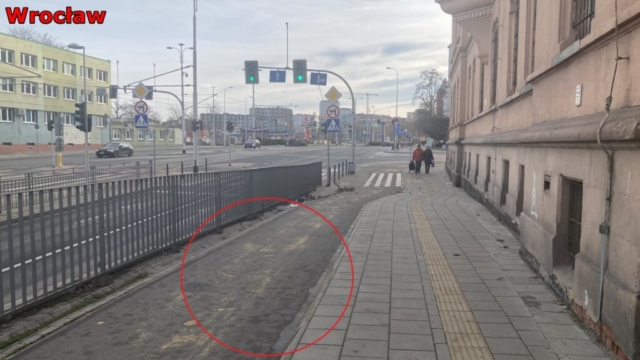 Tu widzimy szerszy kontekst – trasę województwa dolnośląskiego. Jak można się przekonać cyrk z zabrudzaniem i zapaskudzaniem ulic nie dotyczy tylko stolicy województwa: