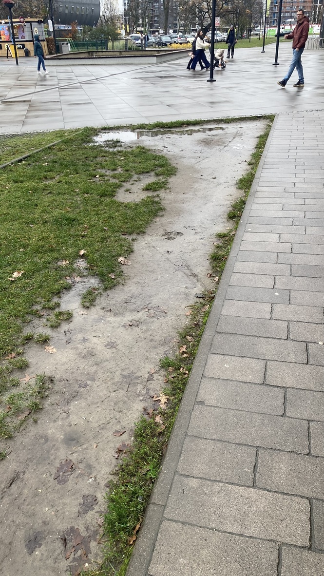 Tak właśnie nie szanujemy trawników. Z uporem maniaka dewastujemy je powodując, że jedynym skutecznym rozwiązaniem staje się … słupkoza.